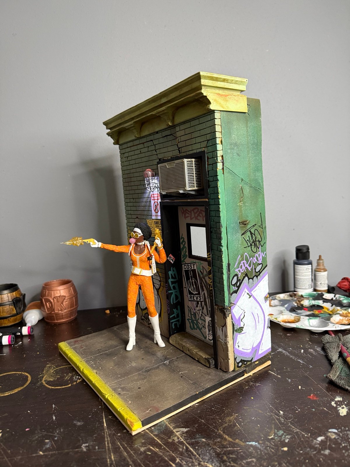Bring your action figure photography to life with this 1:12 scale urban alley diorama — handcrafted and packed with attitude.