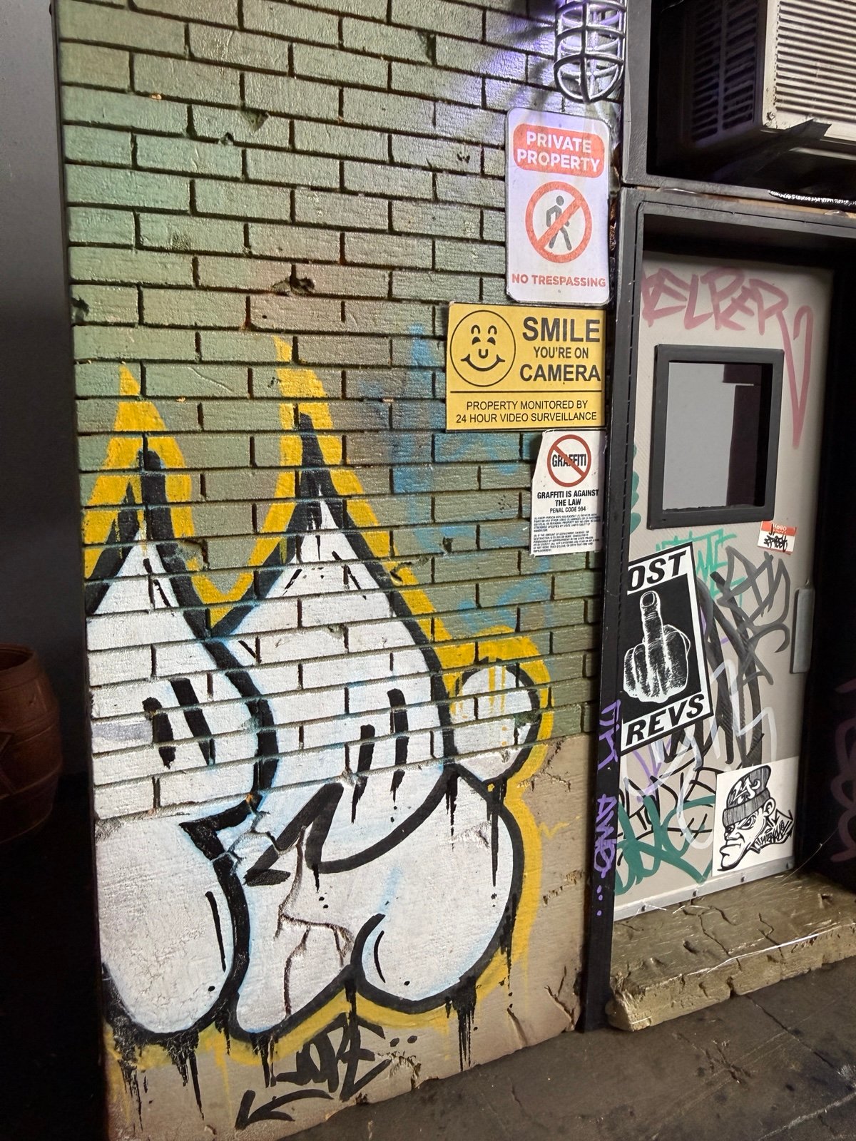 • Graffiti, posters, and signs applied by hand