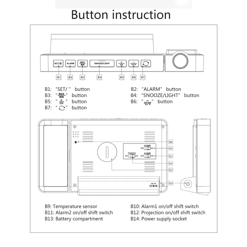 (1) The projection function supports simultaneous projection of "time and temperature". Switch to select sustainable projection or turn off projection