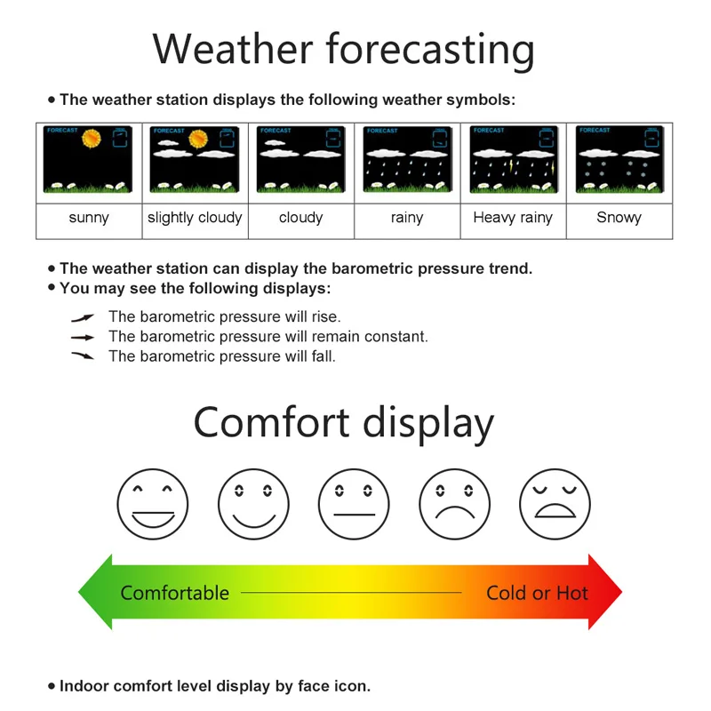 -- Measurement range: 600hPa/mb to 1100hPa/mb (17.72inHg to 32.48inHg)